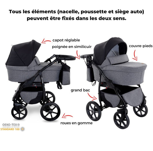 TRIOFLEX 3 en 1 : Poussette - Nacelle - Cosy (siége auto)